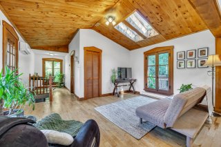 - Salon doté d'un plafond cathédrale créant une atmosphère conviviale